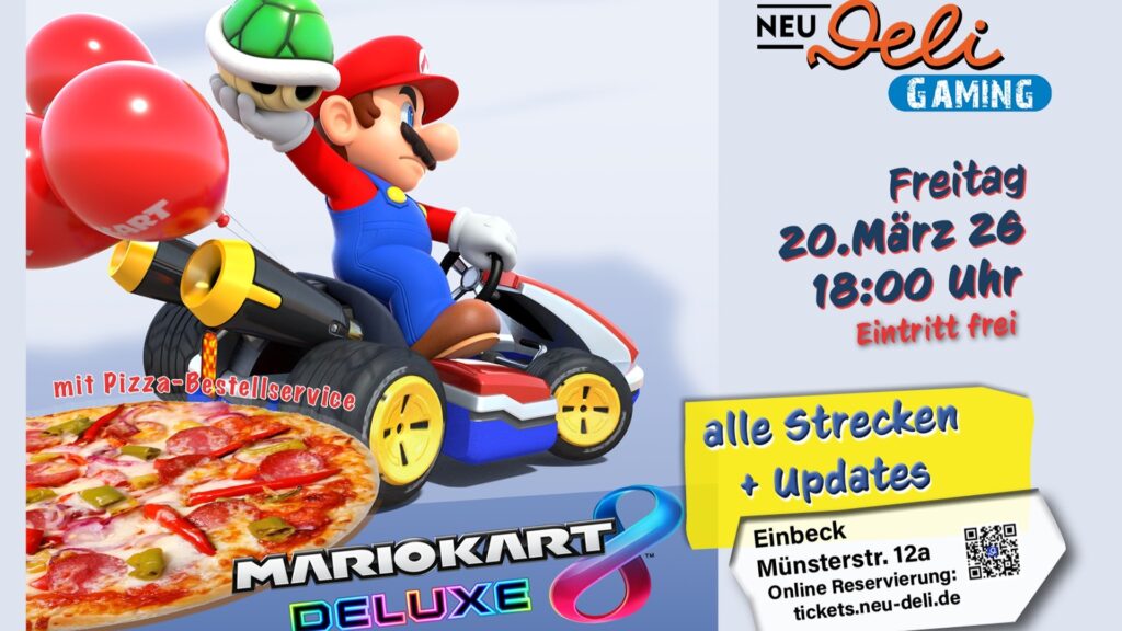 Wir veranstalten wieder einen Mariokart 8 Deluxe Renntag auf der großen Leinwand im Kino NEU-Deli. Inzwischen auch mit allen Strecken und Updates.