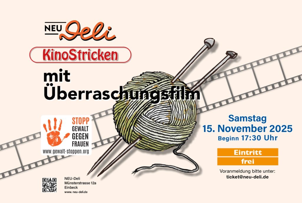 Zur besseren Planung bitte wir um Anmeldung unter ticket@neu-deli.de (Beteff: KinoStricken). Sie können gerne auch spontan vorbeischauen.